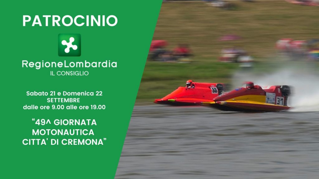 La Giornata motonautica “Città di Cremona”, organizzata da Motonautica Associazione Cremona (M.A.C.) ASD di Cremona con il patrocinio del Consiglio regionale della Lombardia, si svolgerà sul fiume Po dal 21 al 22 settembre.