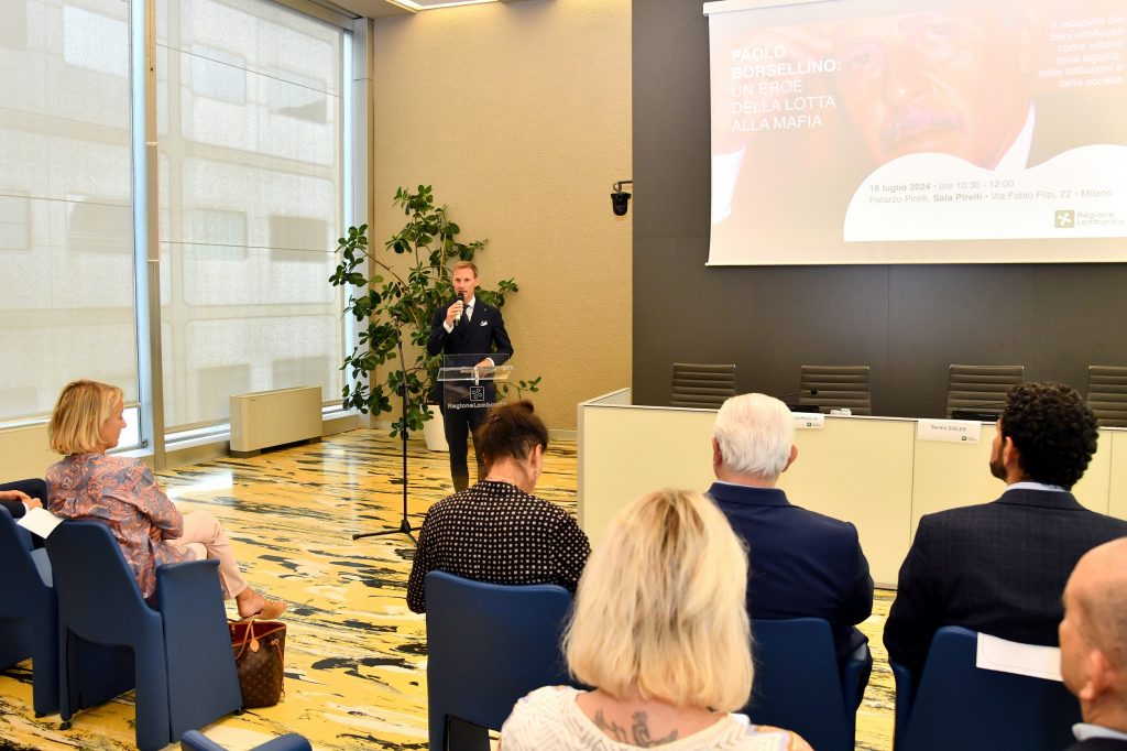 “Iniziative come queste servono a ribadire, sempre e con forza, l’importanza della lotta alla mafia, alla camorra, alla ‘ndrangheta e, in generale, ai sistemi criminali. Non solo a parole, ma con gli esempi concreti di chi si è impegnato e ha sacrificato la propria vita per spezzare il clima di paura e di intimidazione. È quello che ha fatto, con coraggio, determinazione, passione e cuore, Paolo Borsellino, ucciso dalla mafia con 90 chilogrammi di esplosivo in via D’Amelio, a Palermo, il 19 luglio di 32 anni fa”. Lo ha sottolineato questa mattina a Palazzo Pirelli il Presidente del Consiglio regionale Federico Romani aprendo i lavori del convegno “Paolo Borsellino: un eroe della lotta alla mafia”, promosso da Regione Lombardia.
